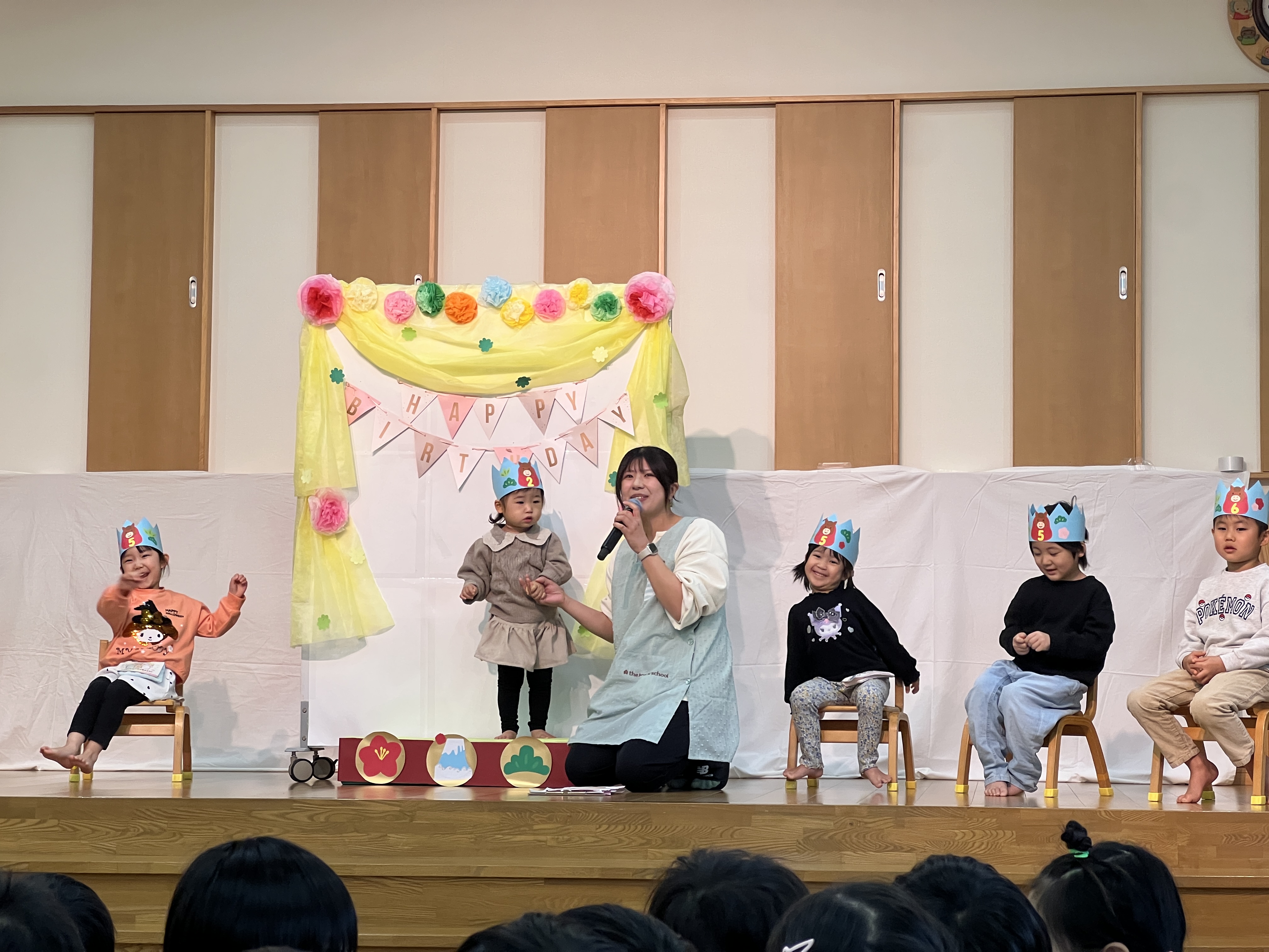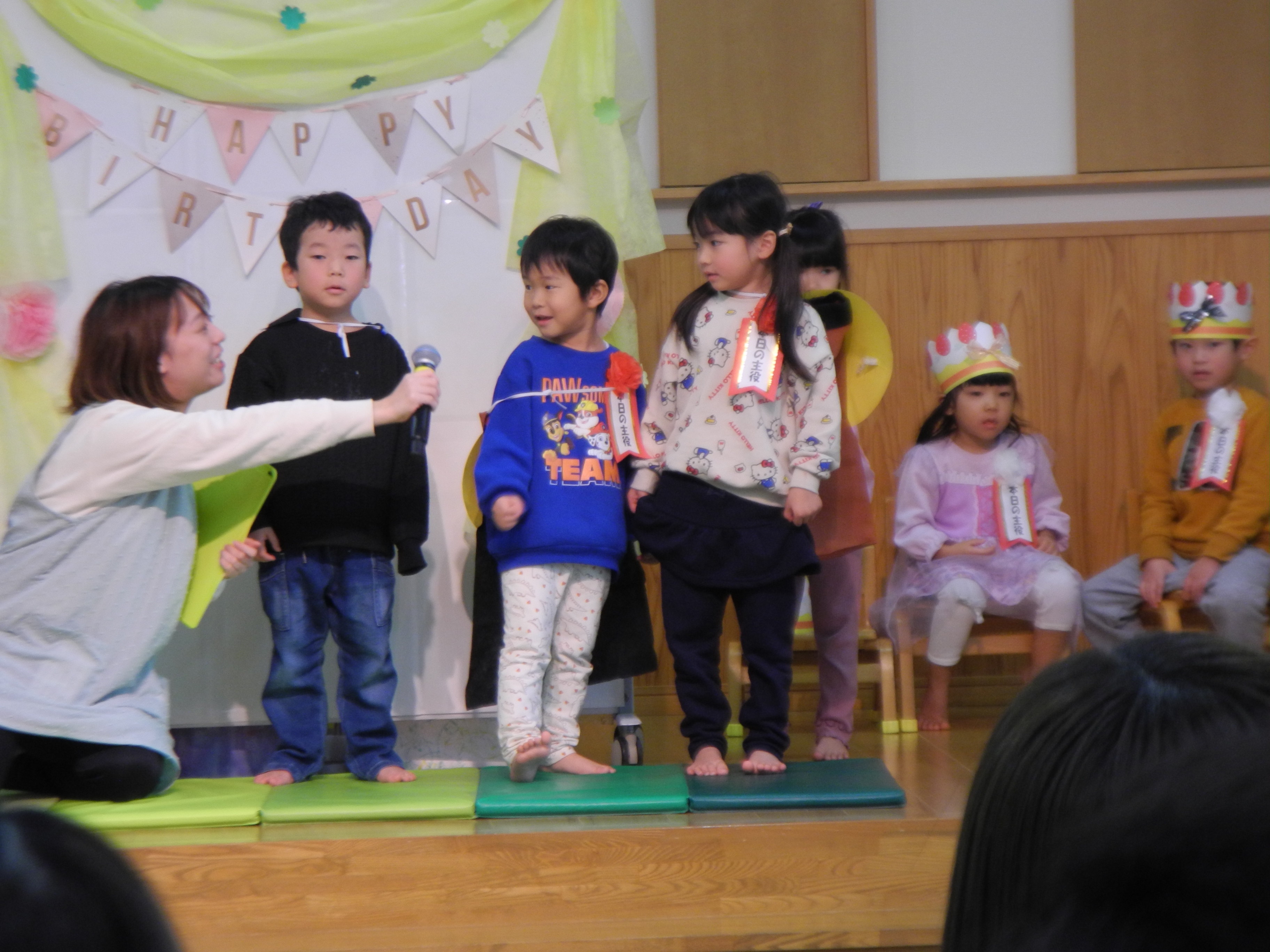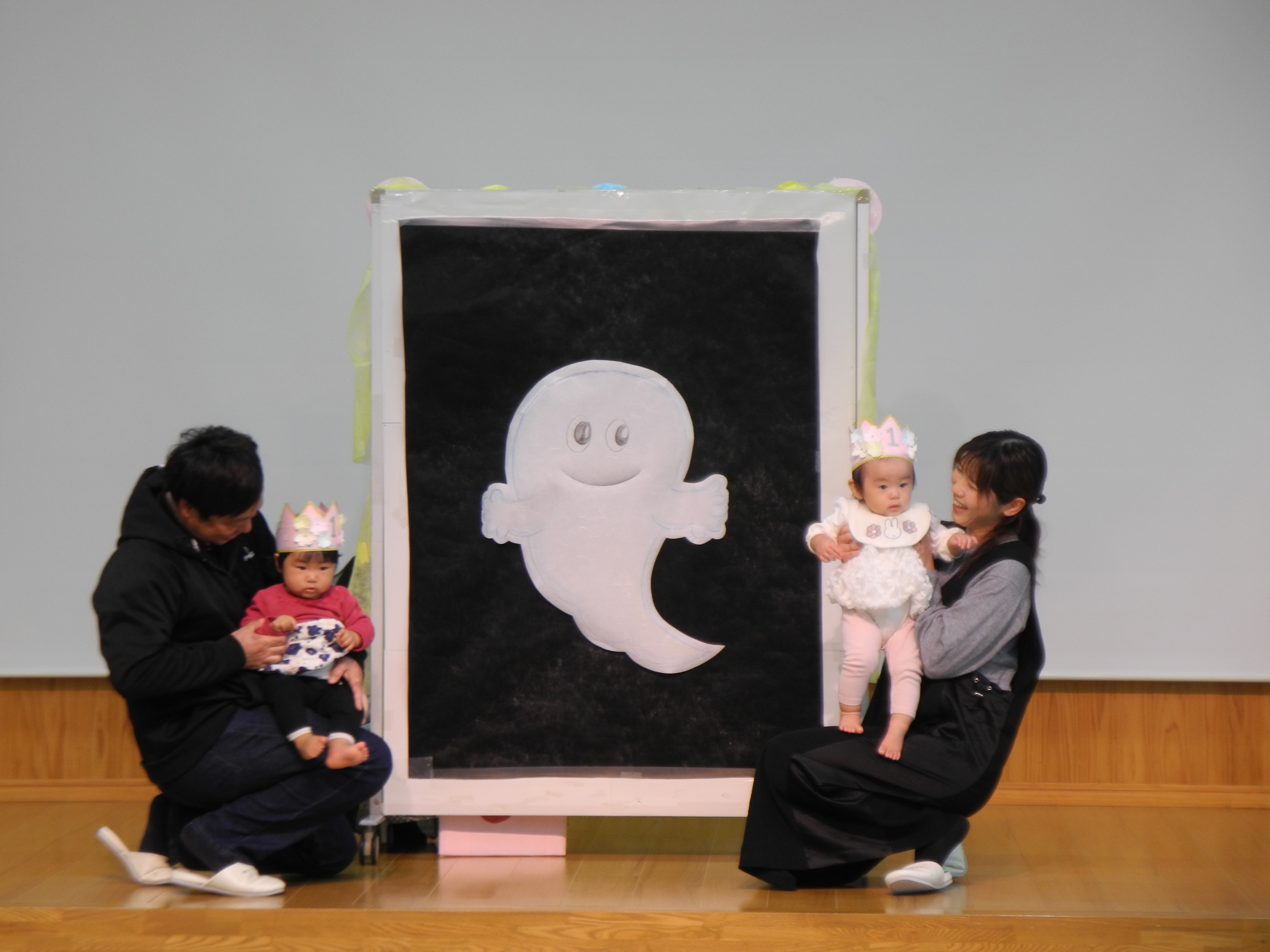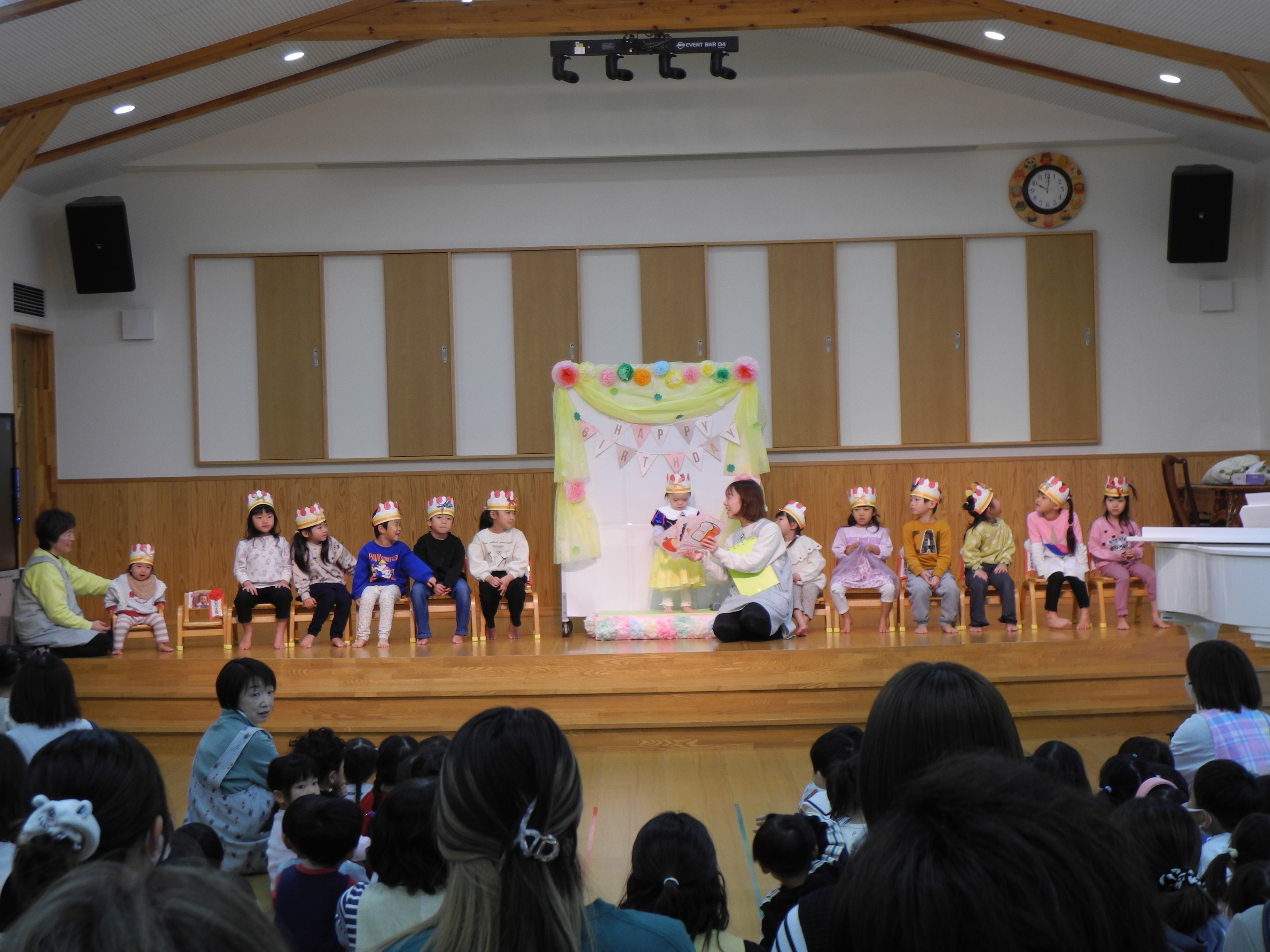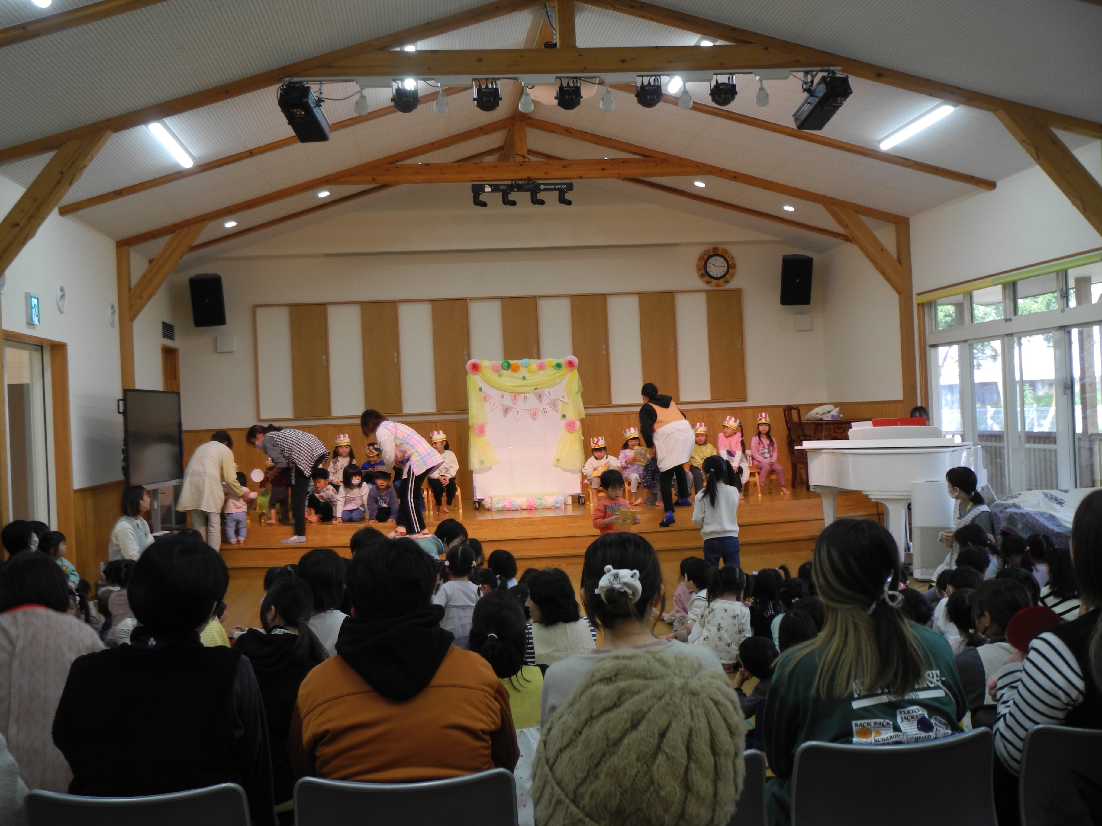 11月生まれの誕生会がありました。11月の誕生会は絵本「ばけたくんのおたんじょうびの巻」では、お父さんお母さんにも舞台にあがっていただき誕生会を盛り上げていただきました。ありがとうございました。