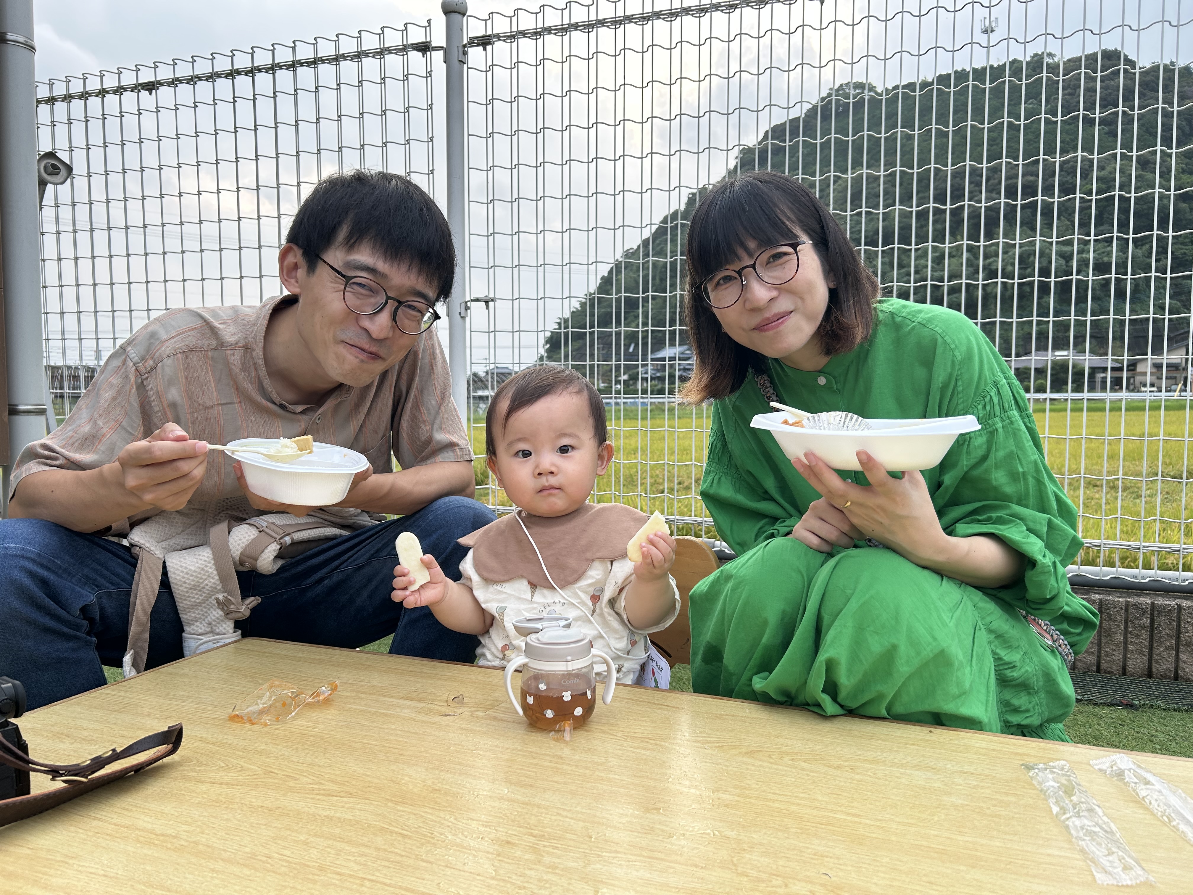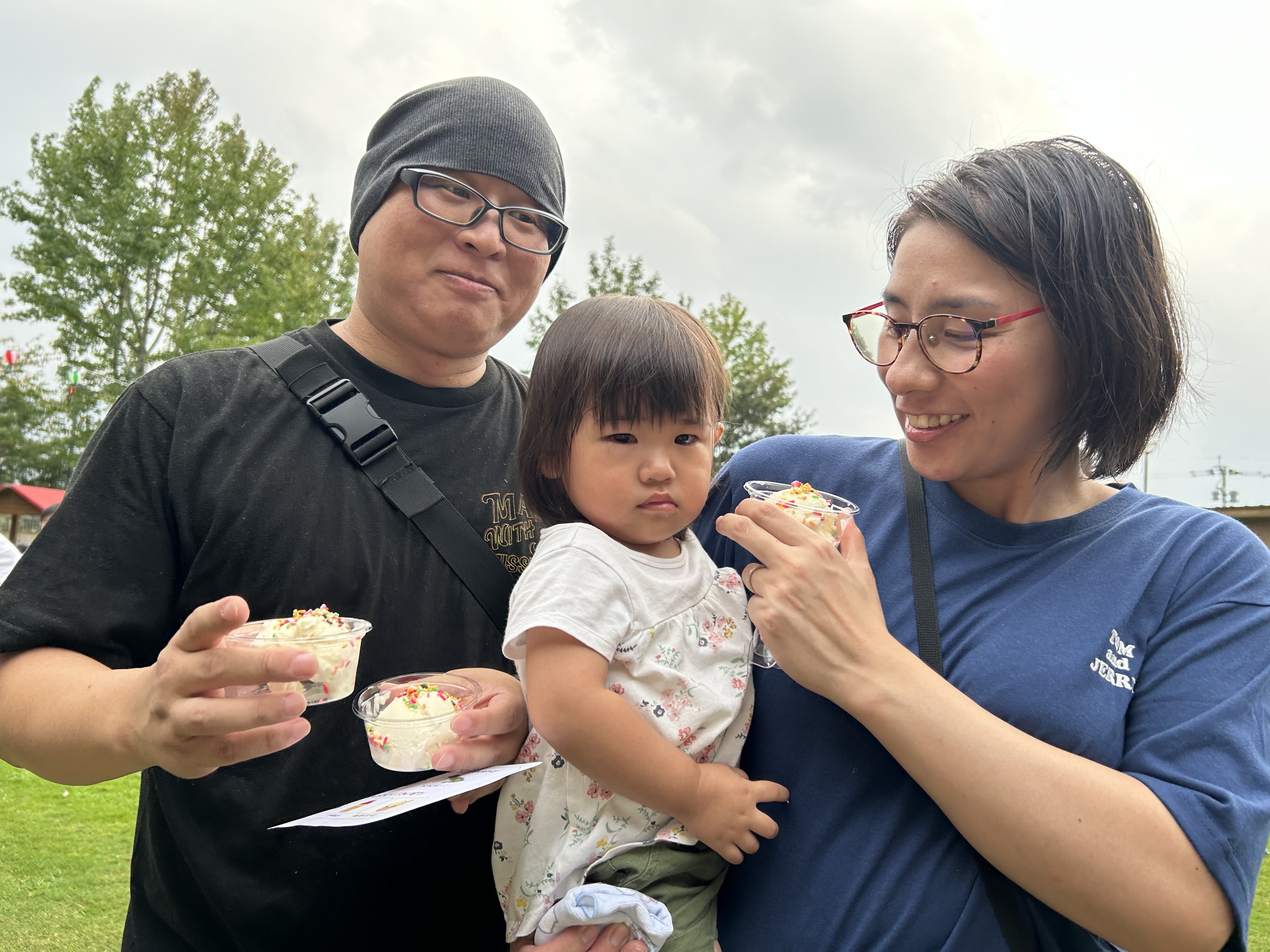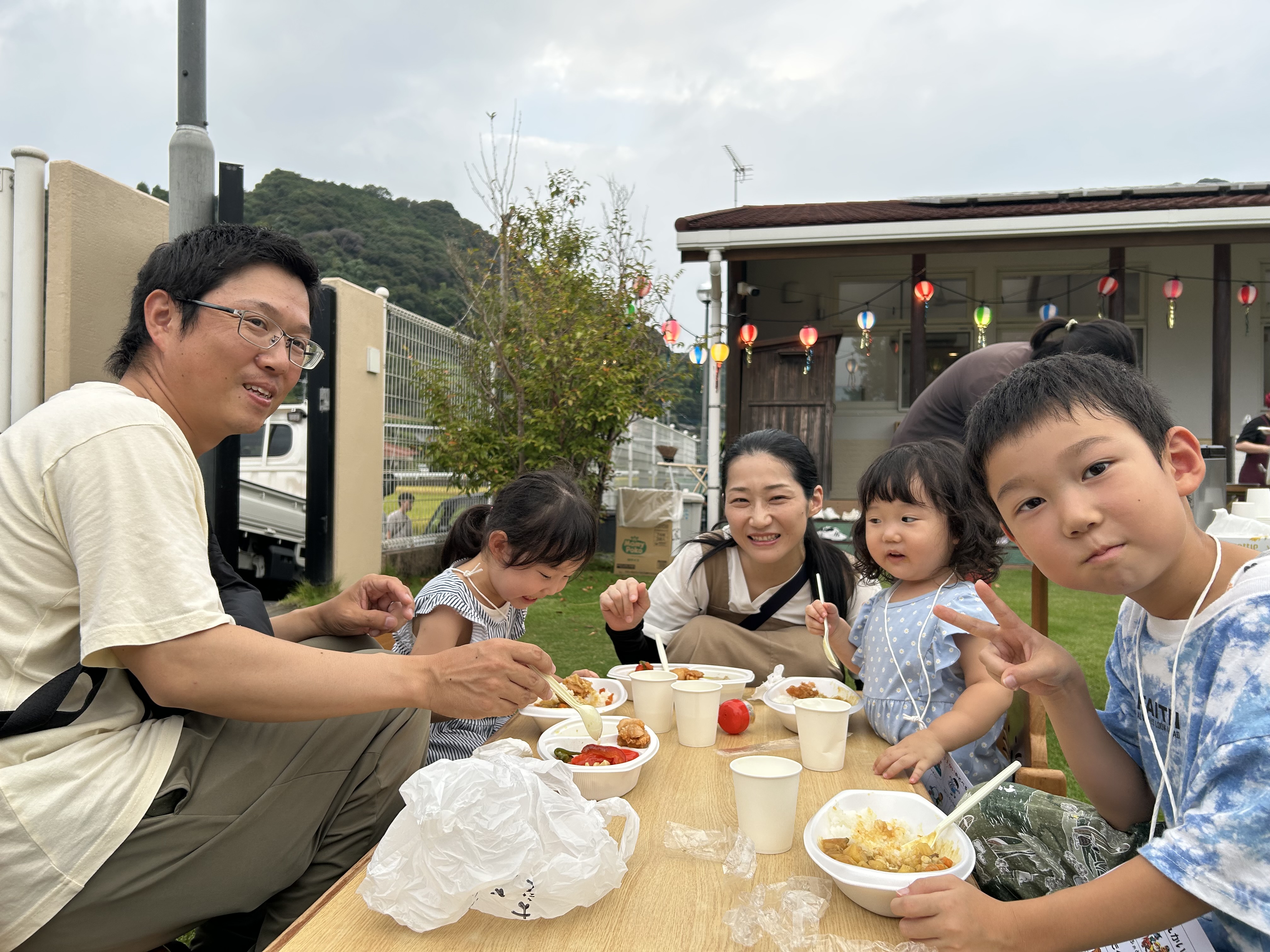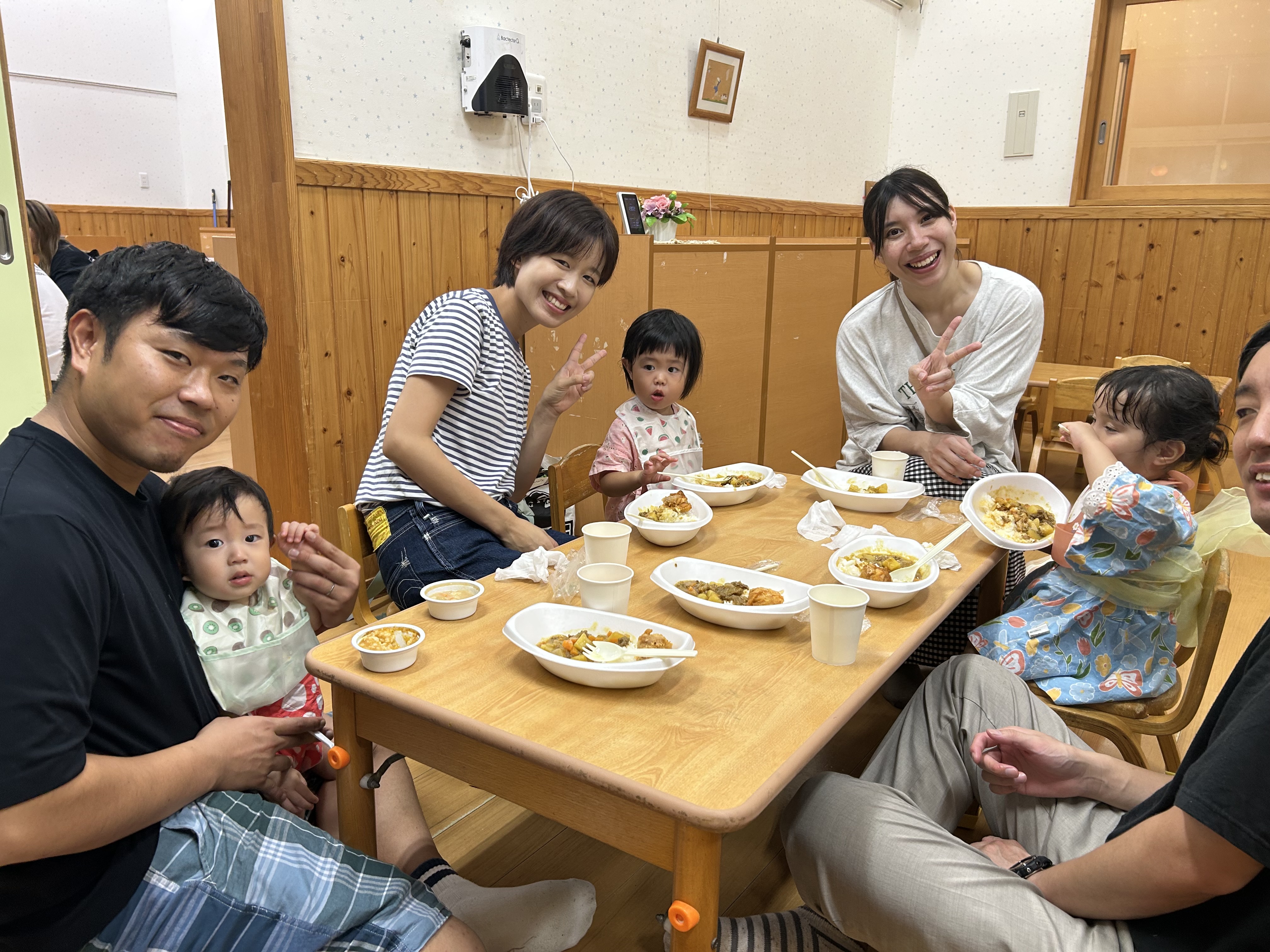 食事のブースを各部屋と外に用意していましたが、あまりの蒸し暑さで室内に集中し、部屋での食事スペースが足りない状況になってしまいましたが、カレー、から揚げ、アイスクリームなど食べていただきました。