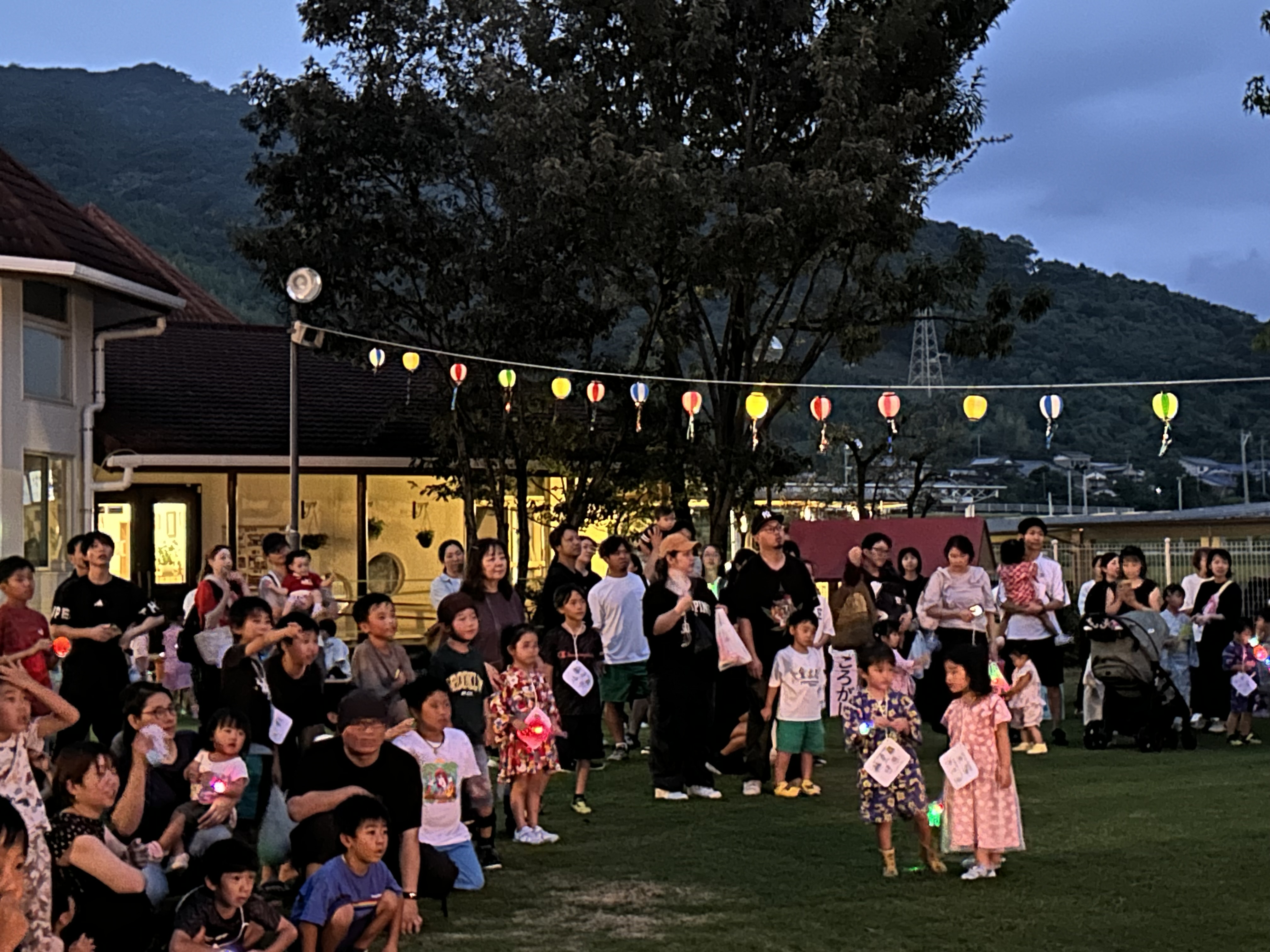 いよいよ暗くなりお楽しみの花火の打ち上げです。雨が降らないことを願っていましたが、みんなの願いがかないました。