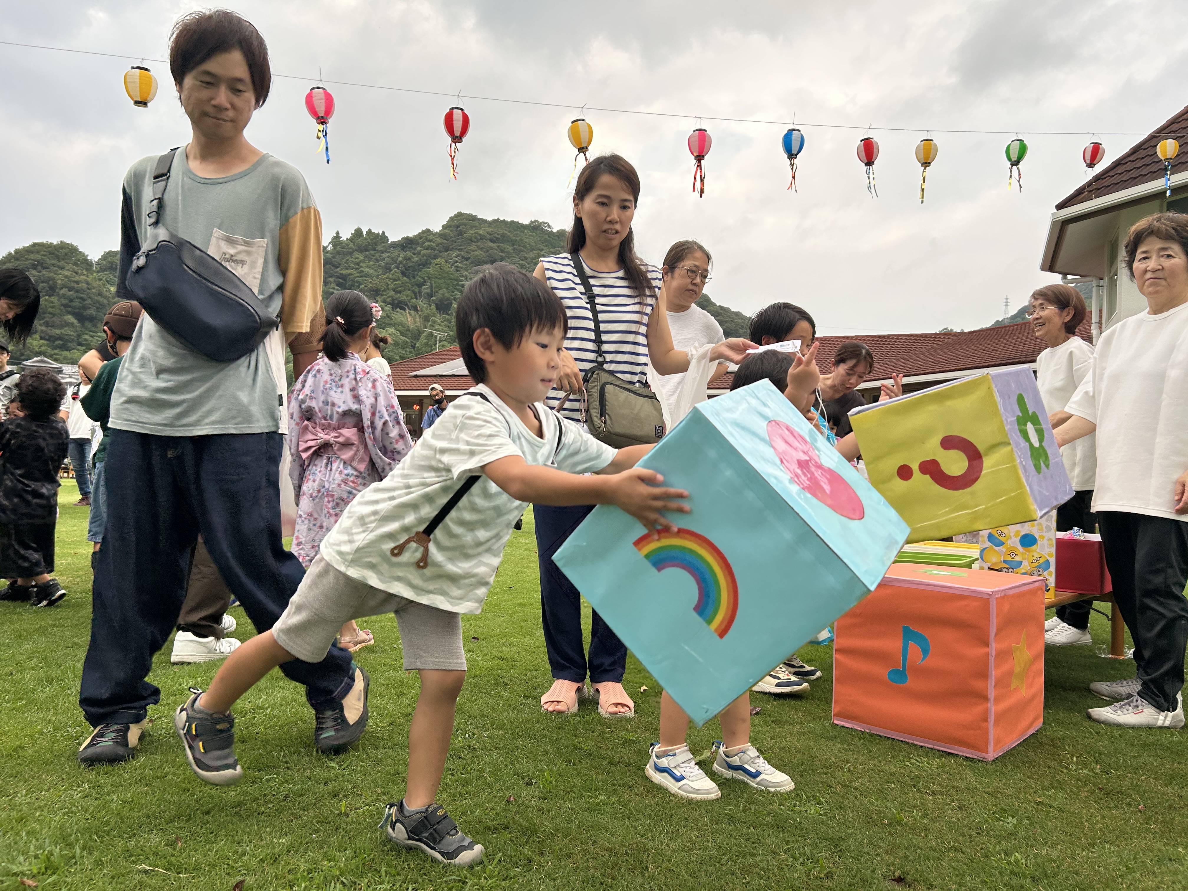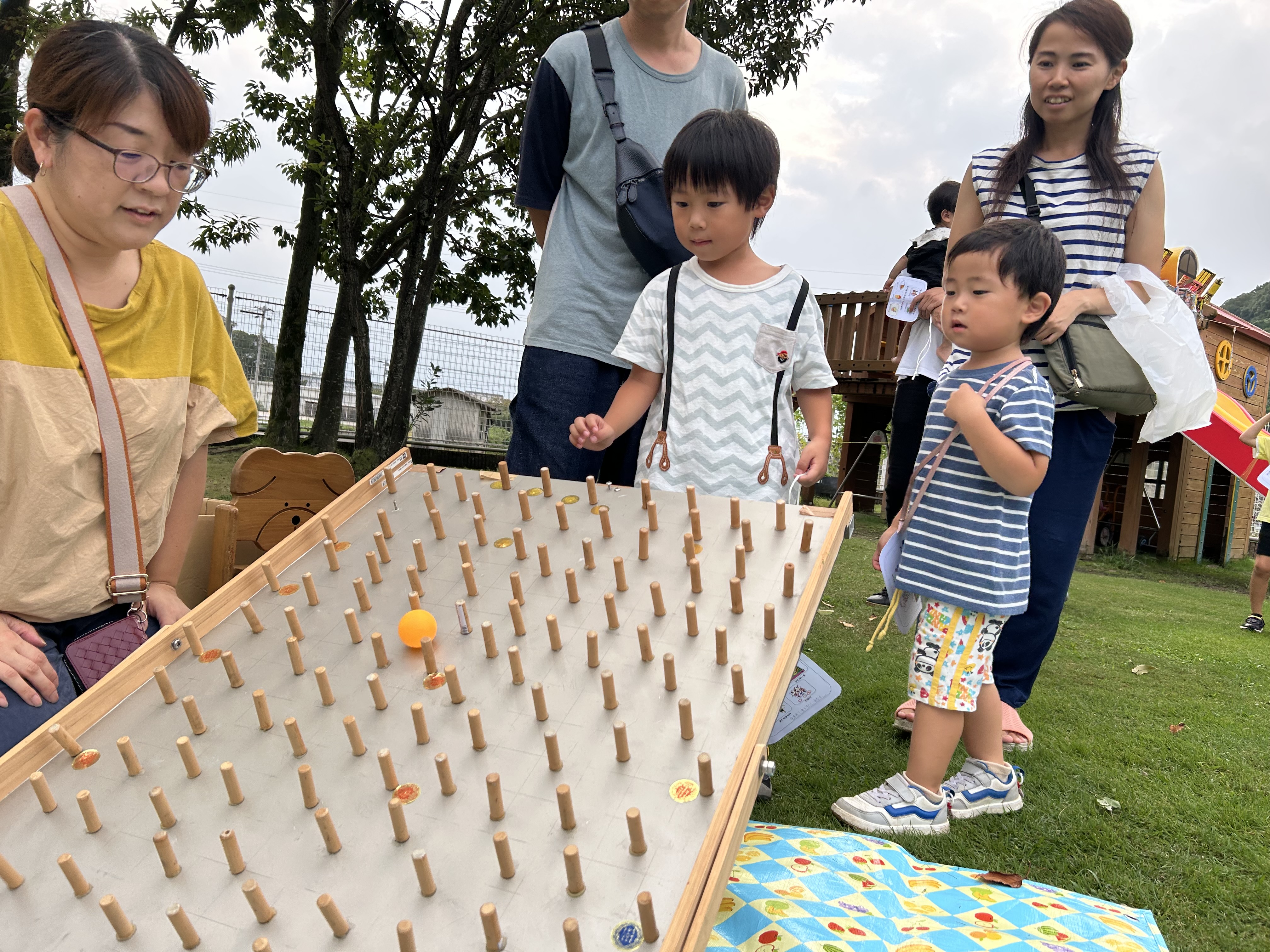 夏の縁日から今年は10/4の秋祭りに変更しました。しかしこの日は蒸し暑く、秋とは言えない天候で秋祭りがスタート。輪投げ、サイコロころがし、ピンボール、わにわにパニックなど
