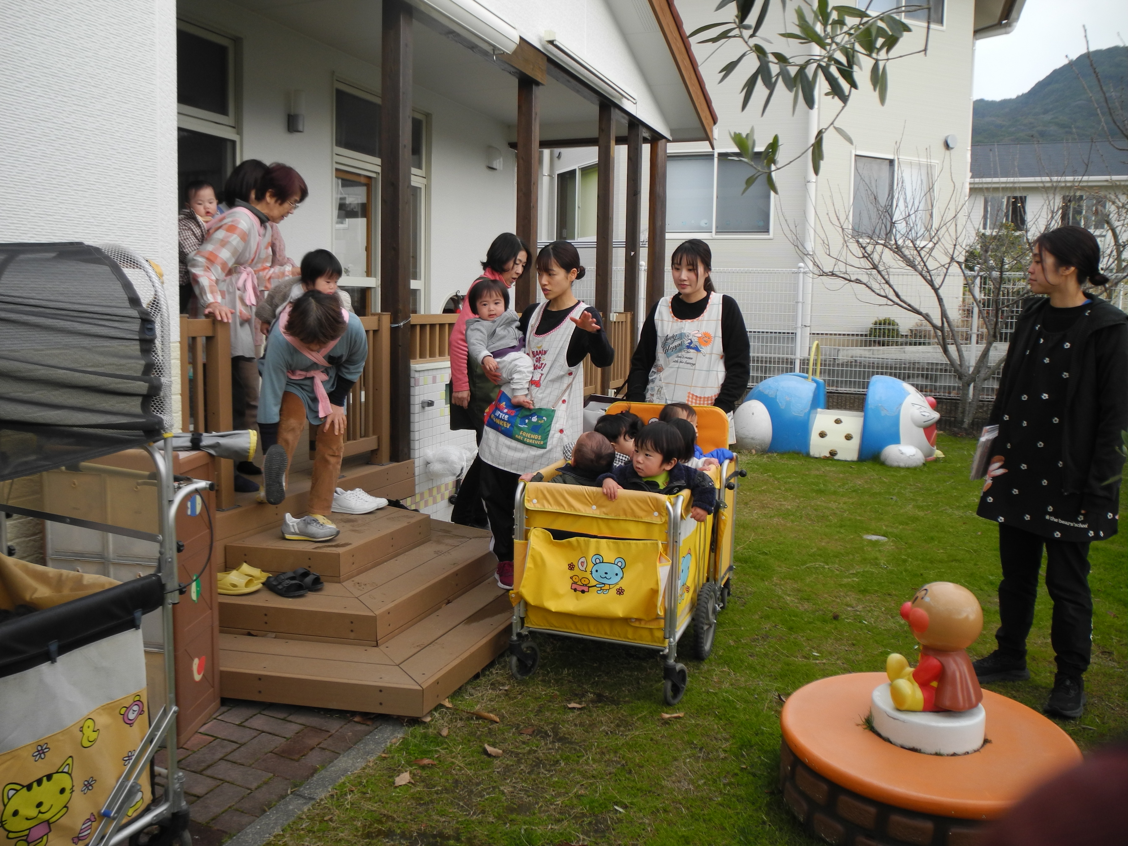 10月生まれの誕生会がありました。誕生者のインタビューでは、好きな食べ物を教えてくれました。その後、職員?いいえアンパンマンが登場!!アンパンマンも10月生まれだったらしくみんなでお祝いをし、誕生者全員にクイズを当ててもらいました。