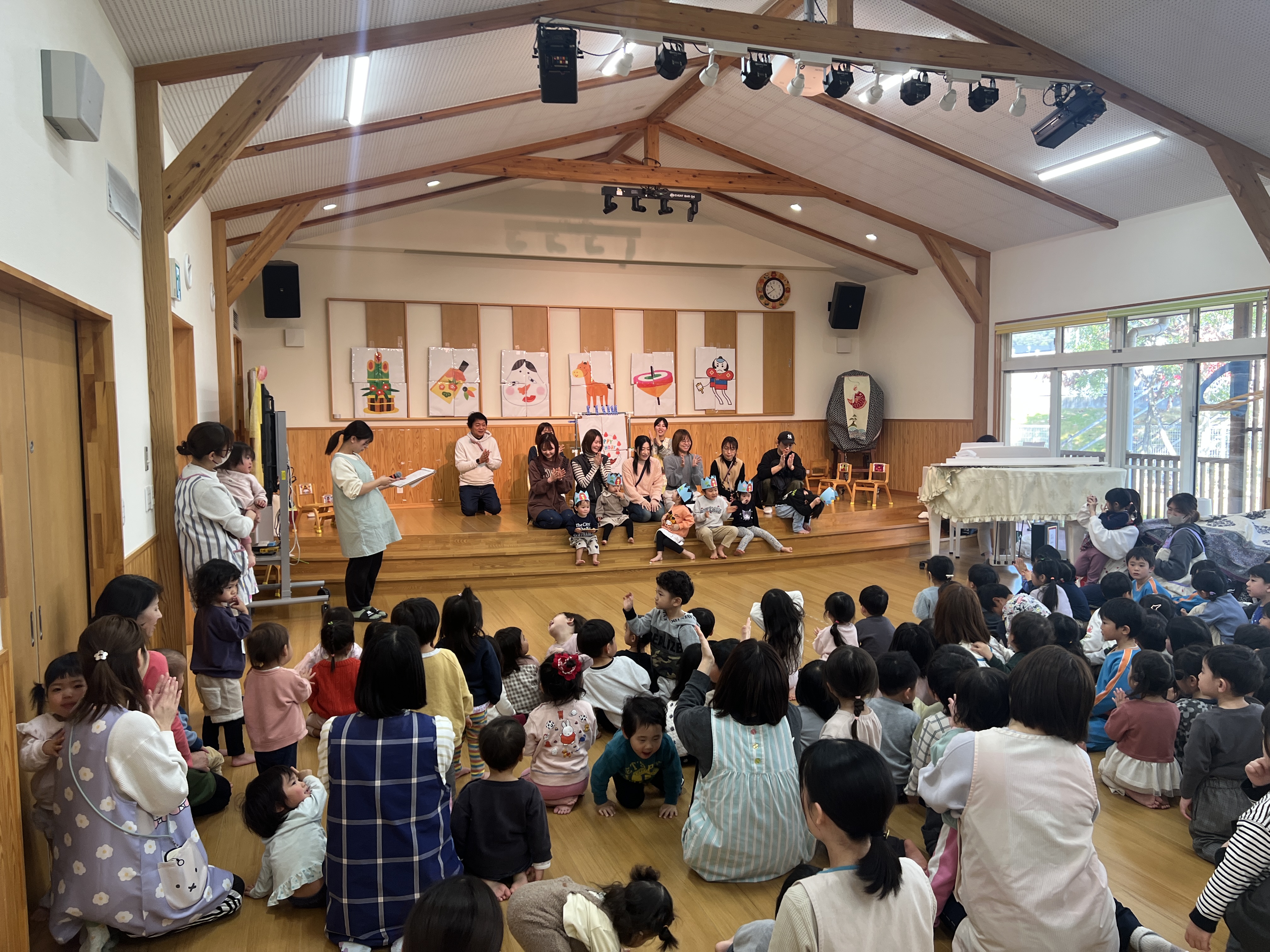 11月生まれの誕生会がありました。11月の誕生会は絵本「ばけたくんのおたんじょうびの巻」では、お父さんお母さんにも舞台にあがっていただき誕生会を盛り上げていただきました。ありがとうございました。